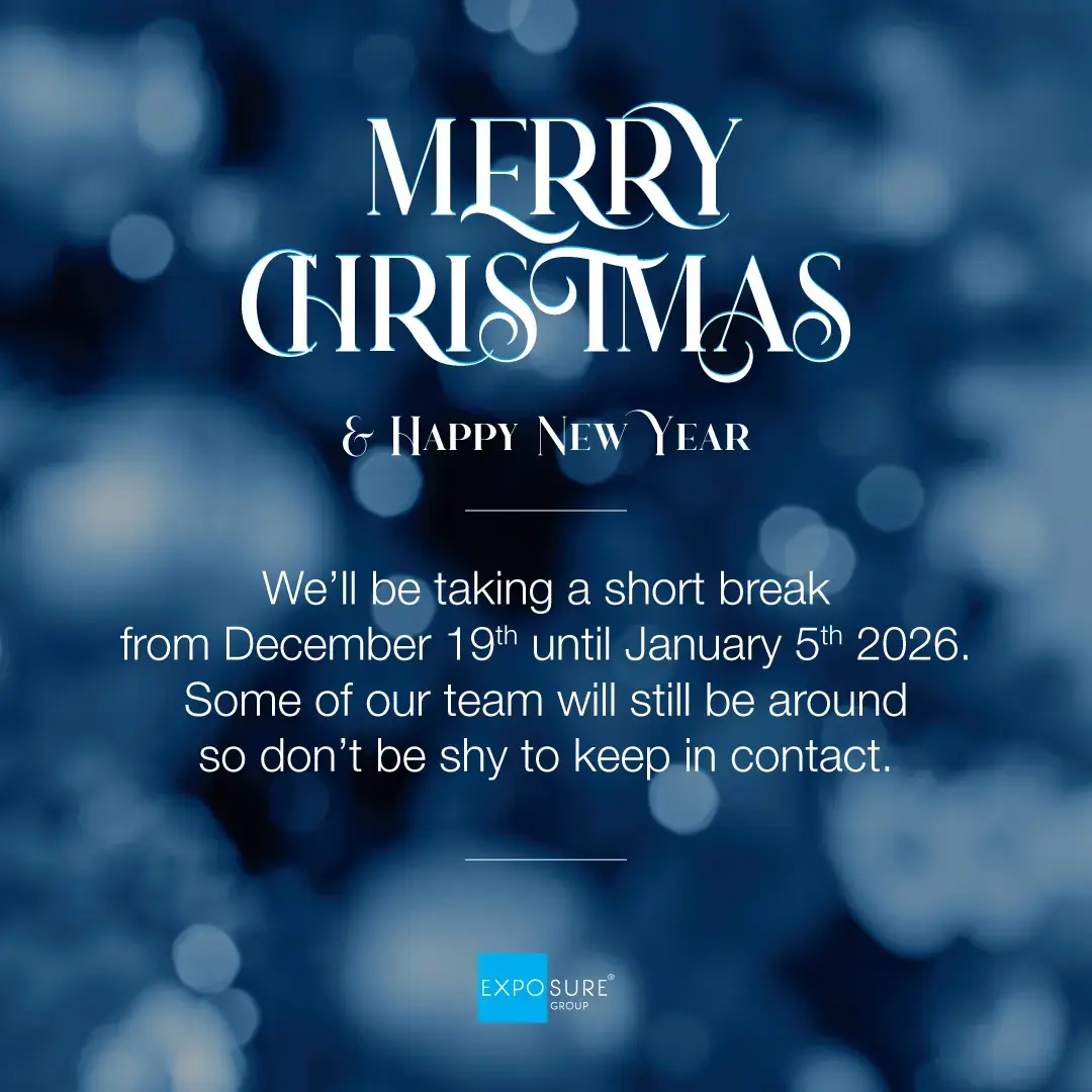 Exposure Group wishes everyone a Merry Christmas and a Happy New Year in 2025. Although we will be officially closed for these dates, we are always available so reach out if you need us.
